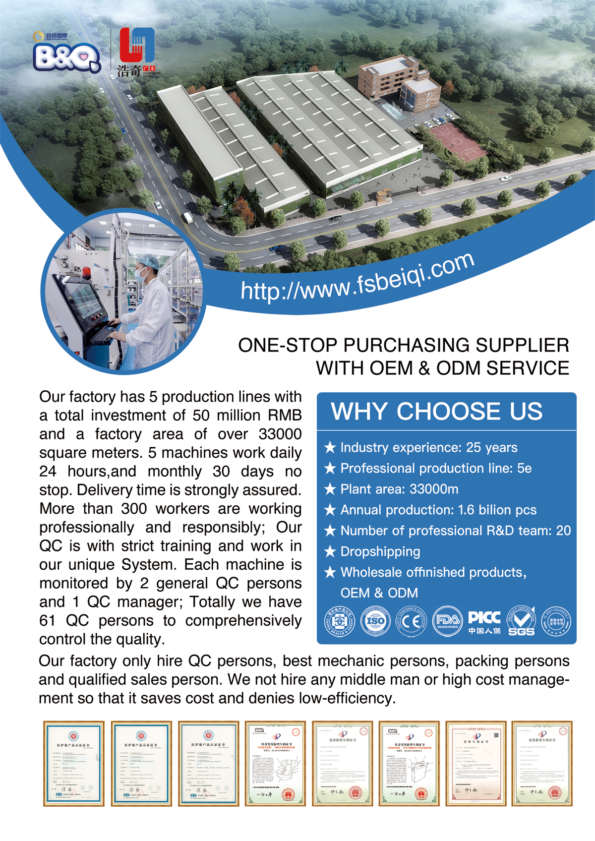 貝奇國(guó)際創(chuàng)建于2010年,是一家專業(yè)生產(chǎn)紙尿褲、衛(wèi)生巾、寵物紙尿褲、成人紙尿褲、護(hù)墊和潔面巾等衛(wèi)生用品的企業(yè)。工廠面積達(dá)60000平方米,倉(cāng)庫(kù)面積多達(dá)20000平方米,生產(chǎn)工場(chǎng)面積40000平方米。員工數(shù)量達(dá)200余人。